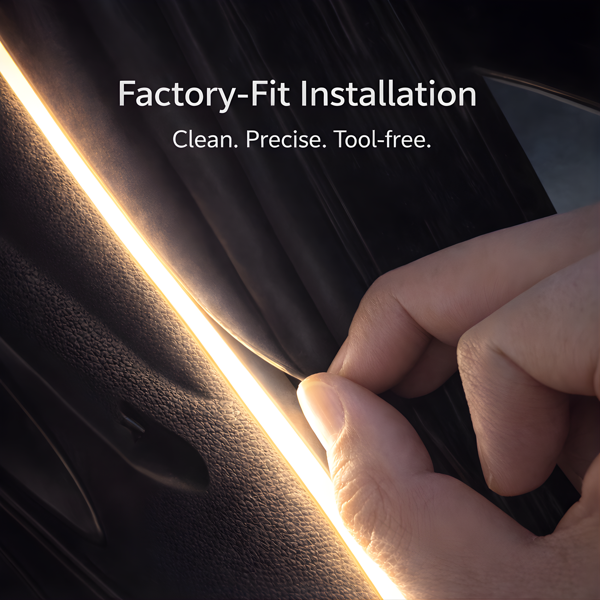 - 🛠️ Hidden, non-destructive install — flexible PVC strip fits curves, can be cut to size, and installs without drilling or damage.